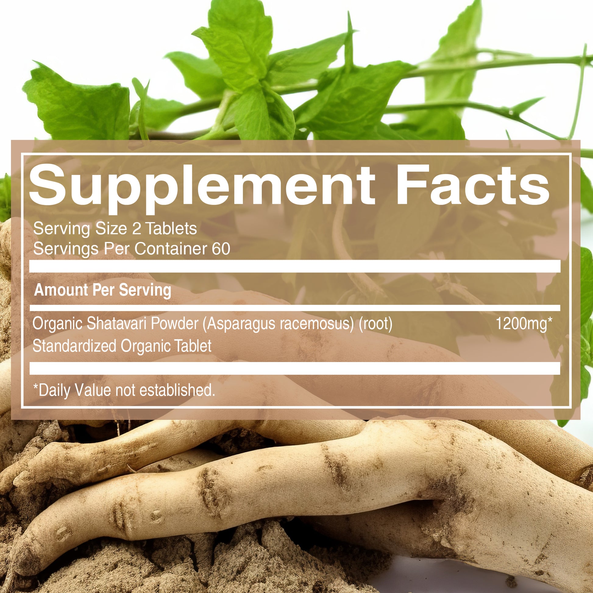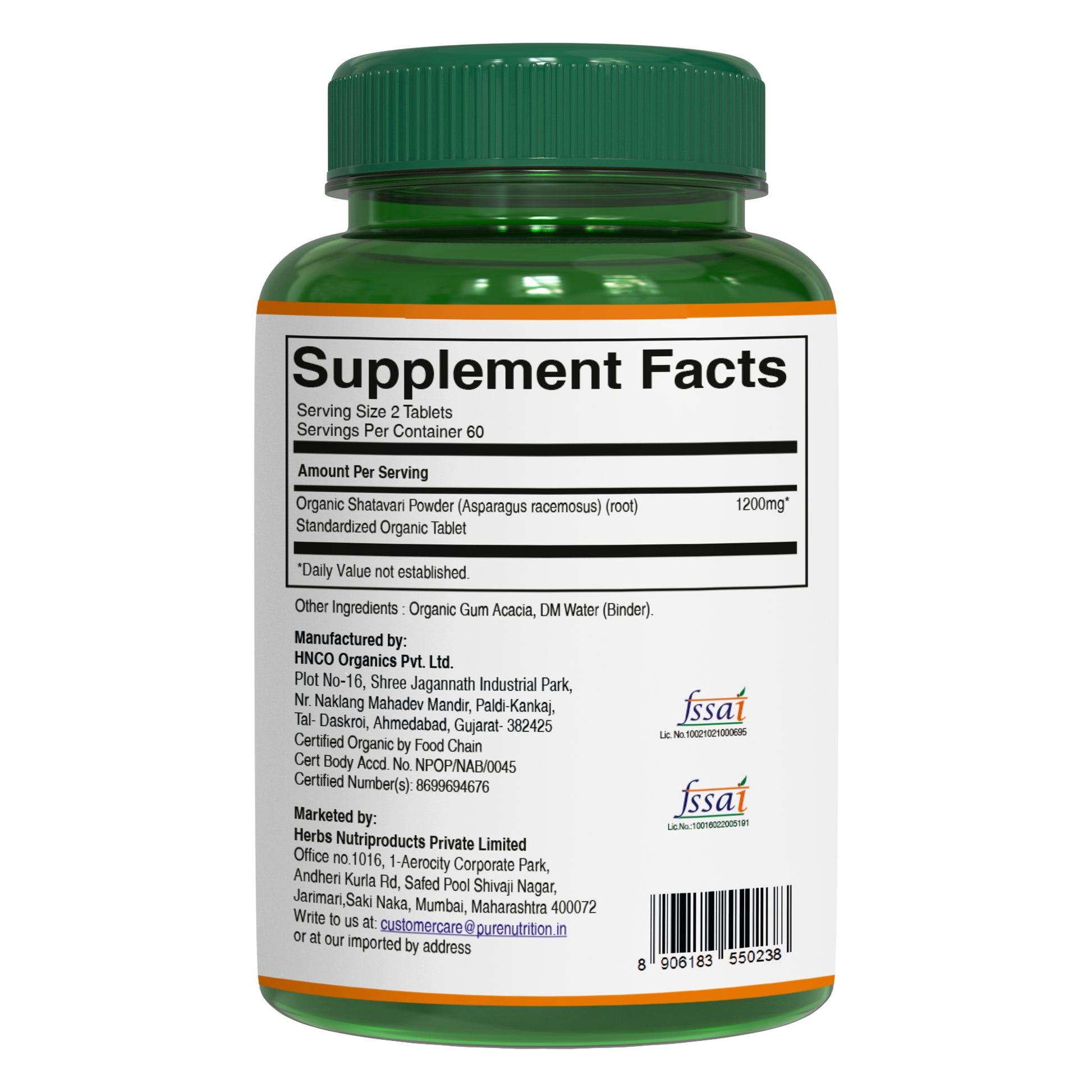 Pure Nutrition Organic Shatavari Tablets are made with USDA certified organic Shatavari root (......